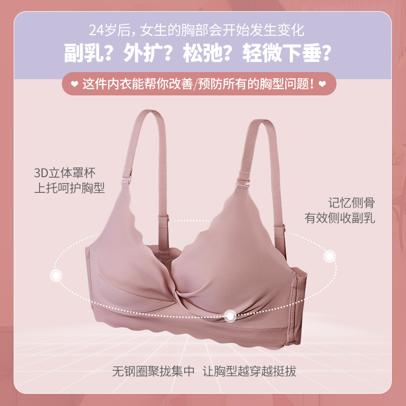 Red underwear women's suit The year of life without rims small chest gathered sub-breast anti-sagging no trace sexy bra cover