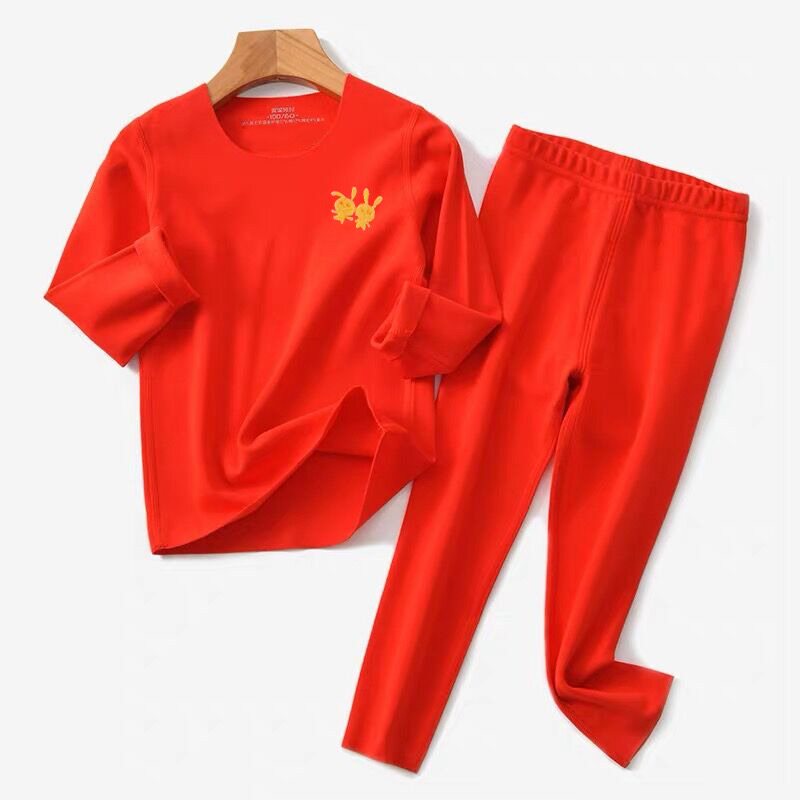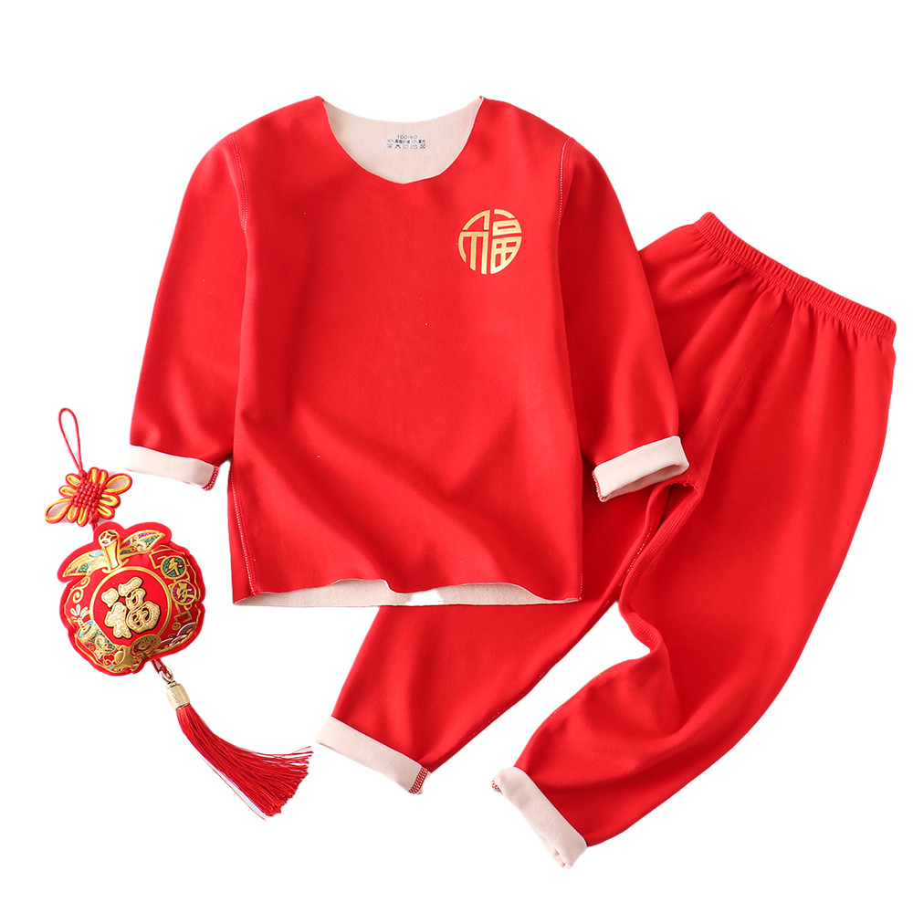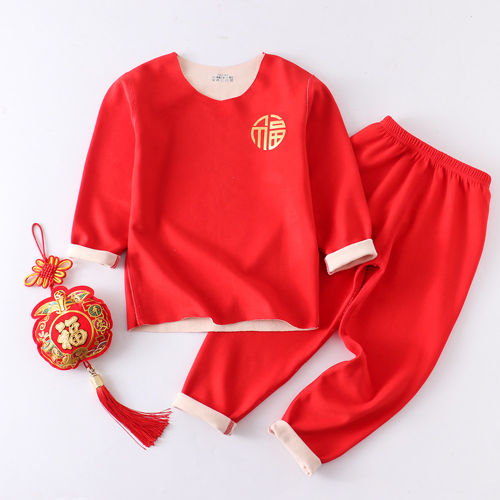 Children's life year red underwear velvet de fever clothes pants tiger year autumn winter in the middle of the big boy no trace male and female children autumn clothes sanitary pants