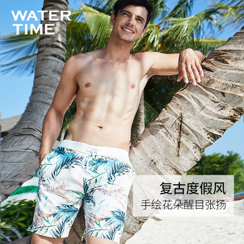 WaterTime beach pants men's flower pants quick-drying seaside vacation loose shorts large size hot spring five-point swimming trunks