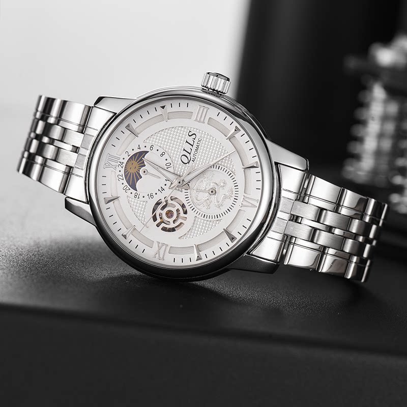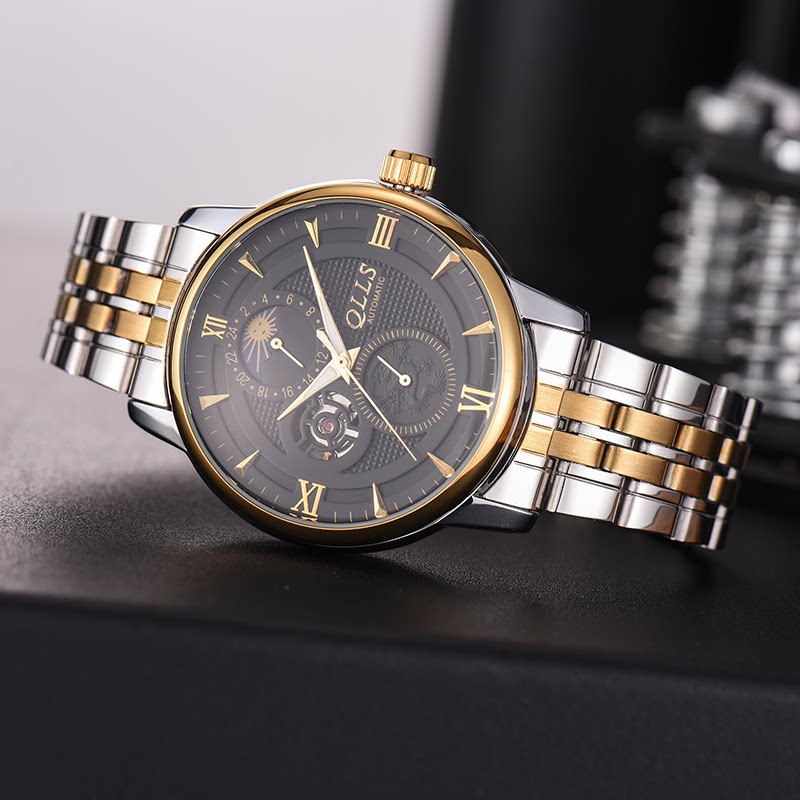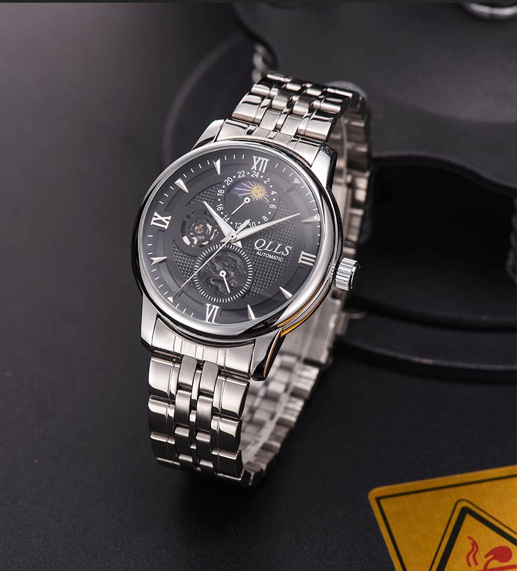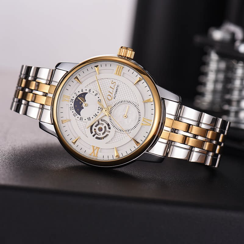 The luminous moon phase shows the power storage perspective window small three-pin tourbillon month display