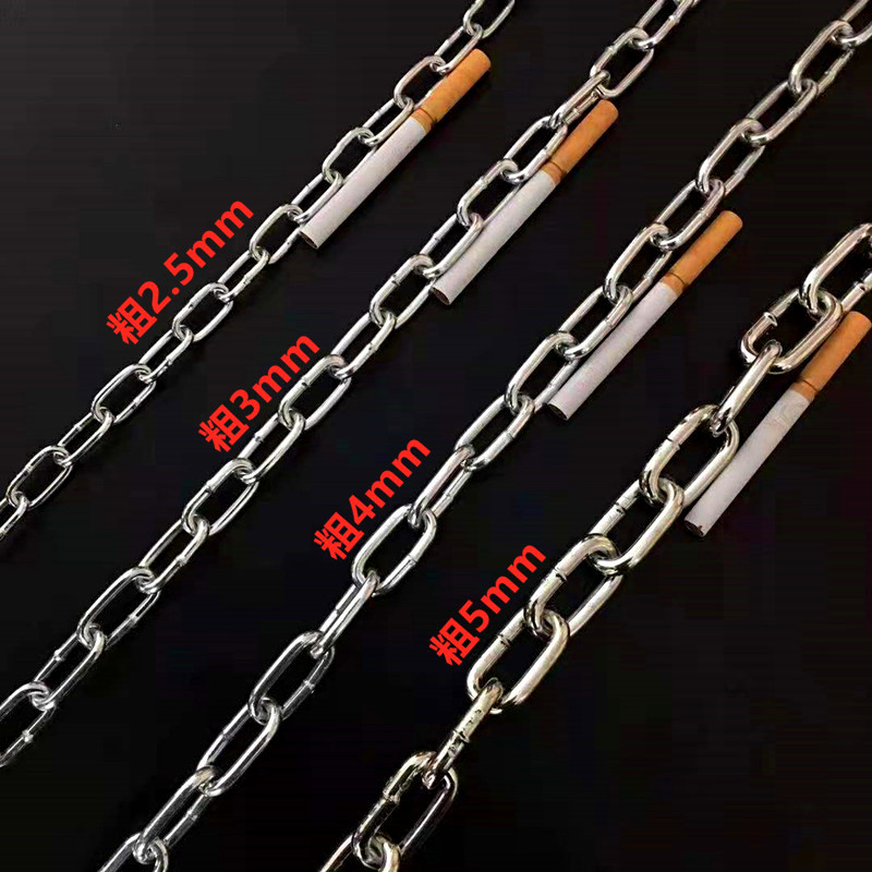 The thickness of the iron chain is 25mm (recommended within 18 catties), the thickness of the iron chain is 3 mm (recommended within 18-40 catties), the thickness of the iron chain is 4 mm (recommended within 40-80 catties), the thickness of the iron chain is 5 mm (recommended within 8