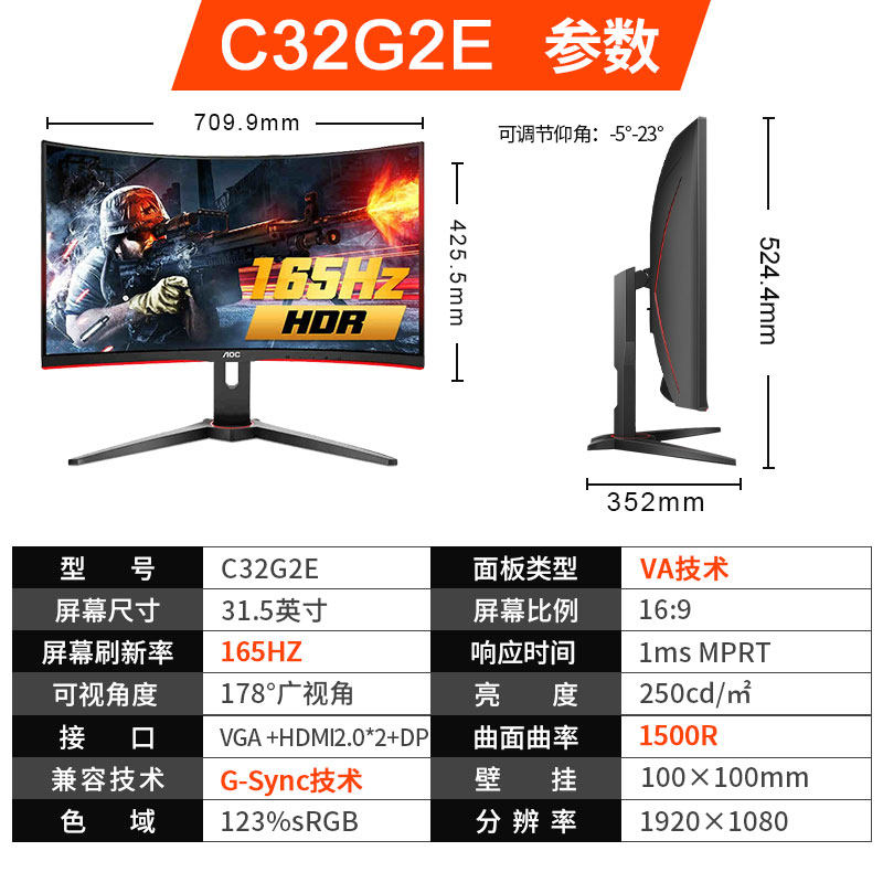 C32G2E 32 inch curved surface 1080P 165HZC32G2ZE 32 inch curved surface 240HZ 0 5msCQ32G2E 3