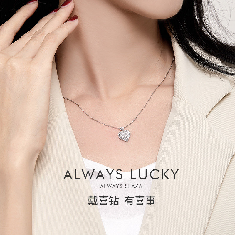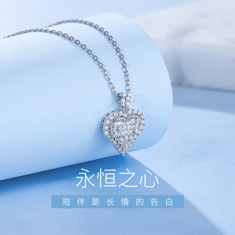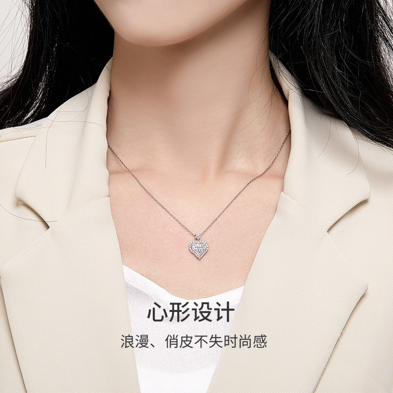 Hi diamond White 18K gold diamond pendant Exquisite ladder square necklace Female heart love real diamond neck heart wedding