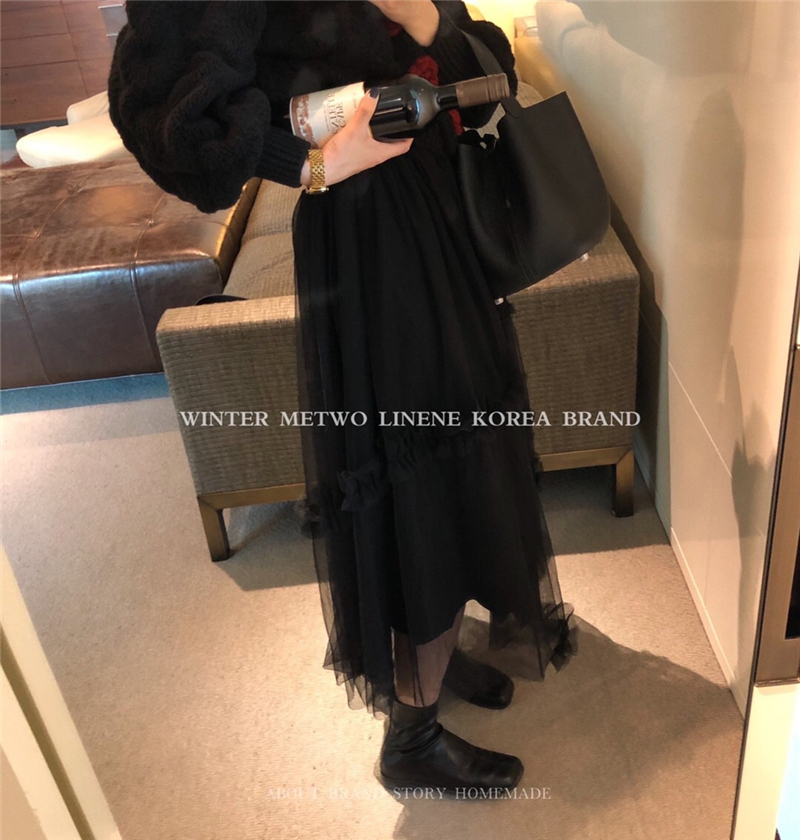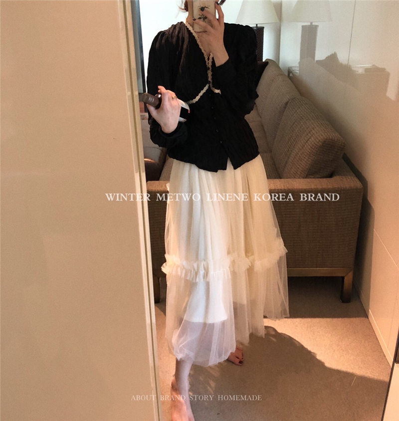 METWO fairy gauze skirt pleated skirt is thin a-line female white mesh skirt mid-length high waist new autumn and winter