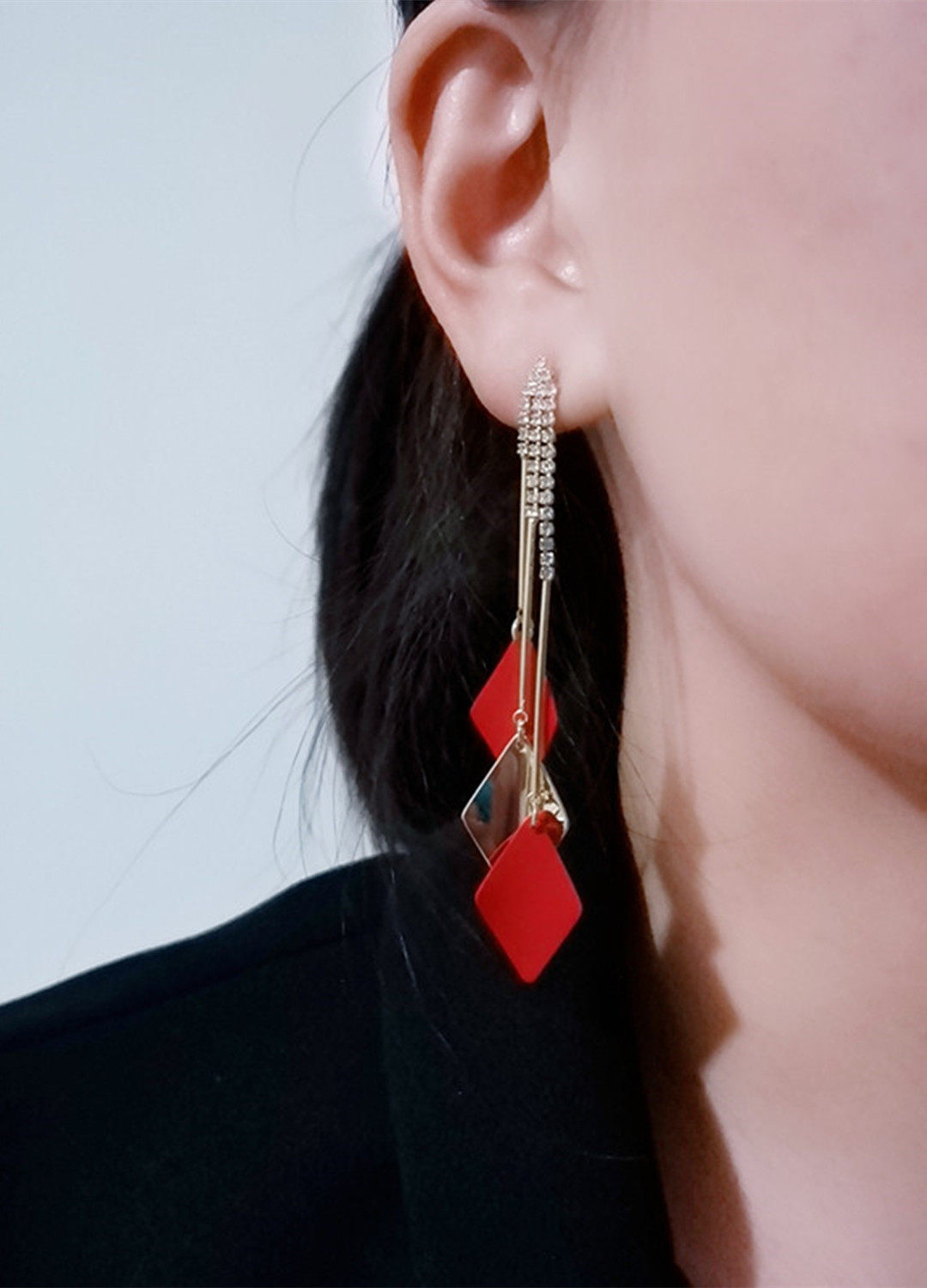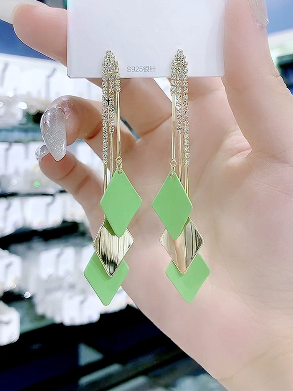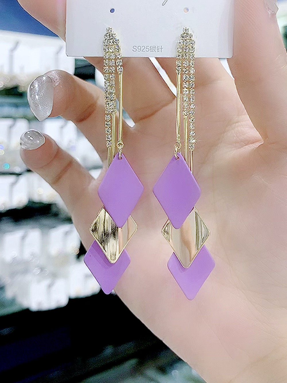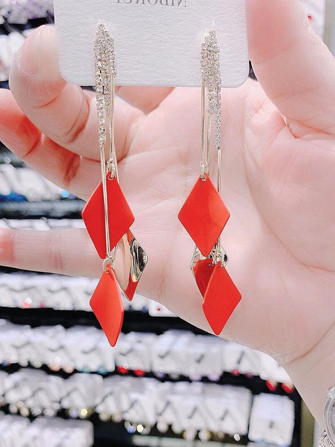 Advanced silver needle appears thin face earrings in 2022 new geometric flux earrings with diamond - shaped ear crash