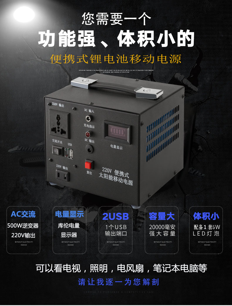 500W 500W 50 thousand mAh charger 500 W 50 thousand mAh 30 W light volt plate 500 W 50 thousand mAh 60 W light volt plate 500 W 17AH 50W light volt plate 50