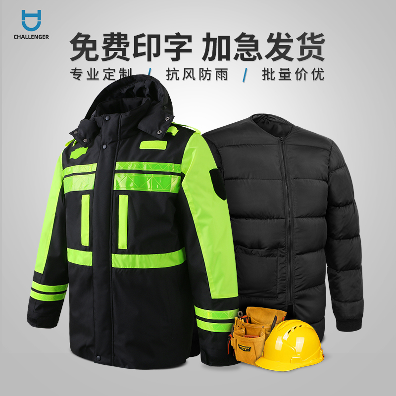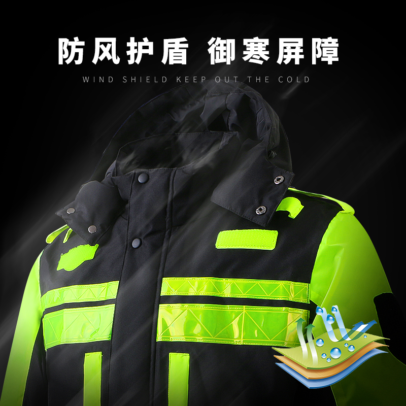 Traffic road fluorescent reflective raincoat cotton coat riding waterproof thickened reflective locomotive clothes jacket can be printed