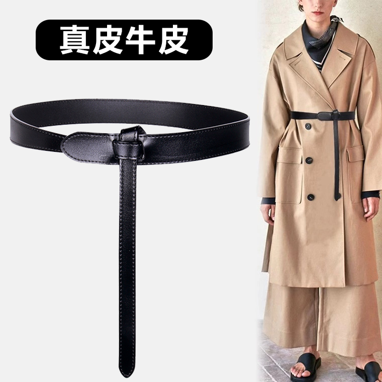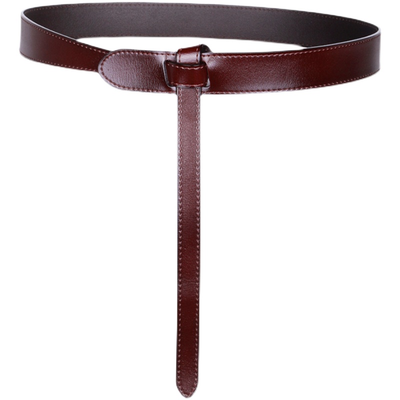 Large Coat Suit Belt Women's Accessories Skirt Waist Seal Trim Genuine Leather Knotted Caramel Color Curry Fashion 100 Lap Fine Leather Strap