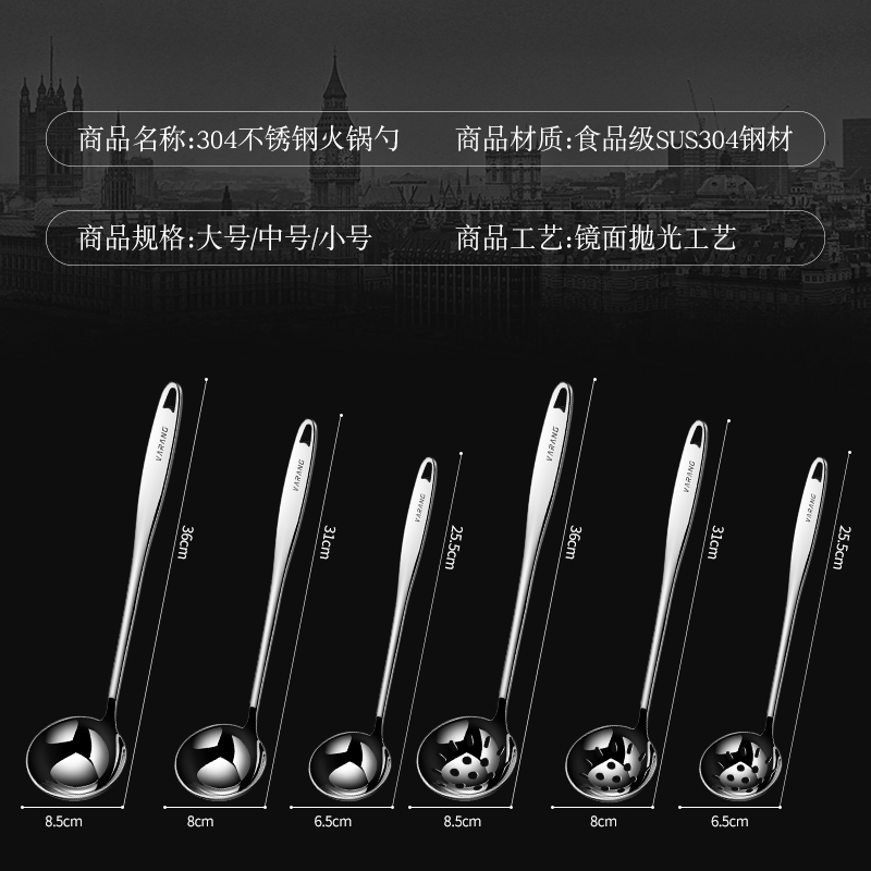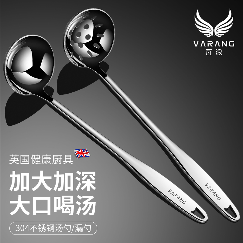 British VARANG 304 stainless steel household long handle hot pot spoon Sheng spoon colander set large thickened spoon