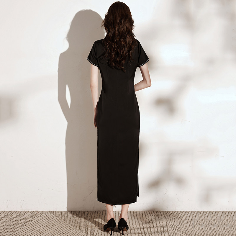 Black cheongsam 2021 New temperament medium and long version retro Chinese style young girl improved version of dress