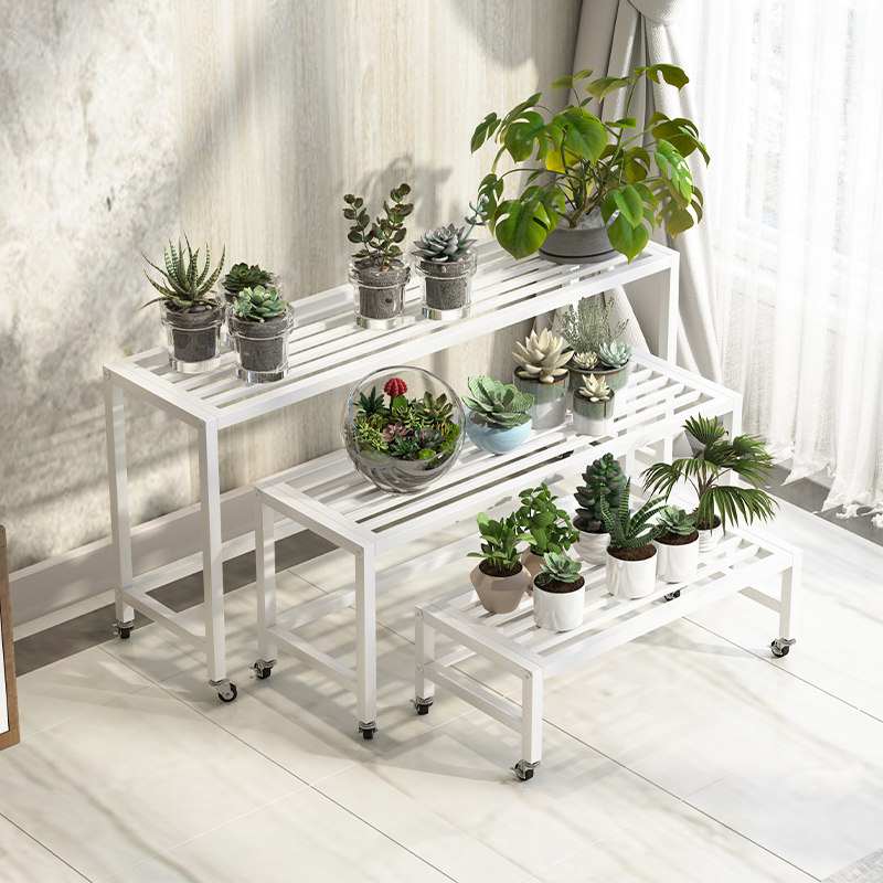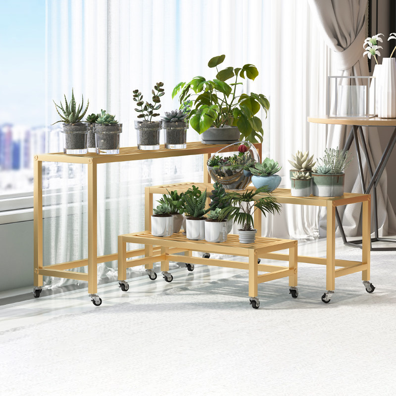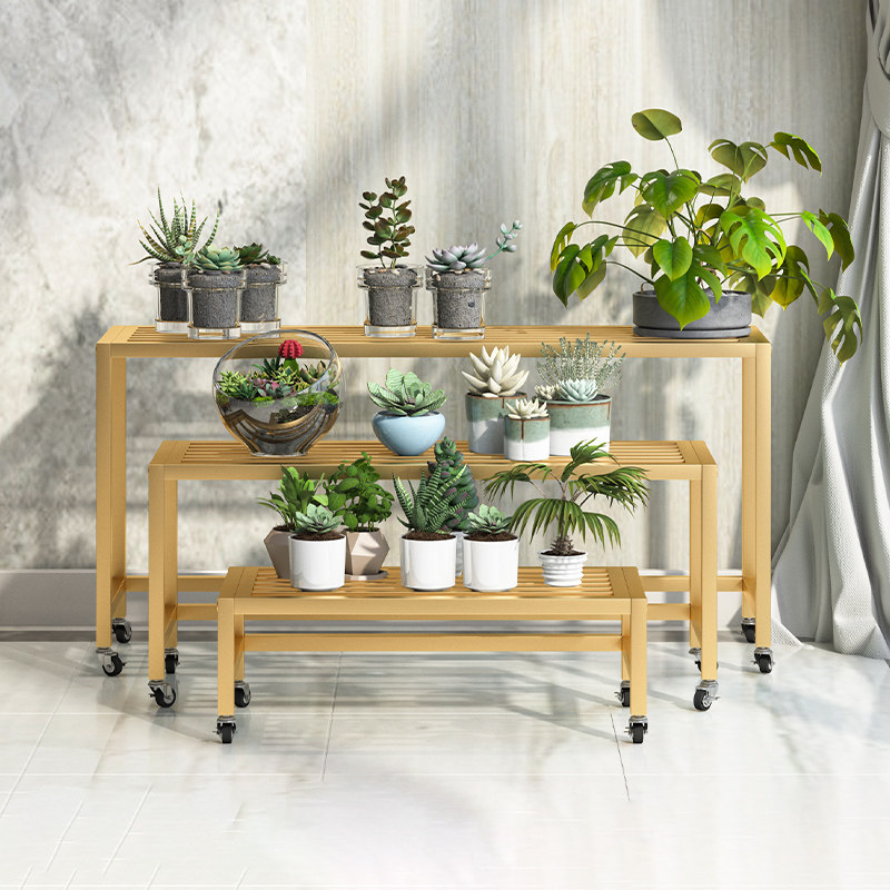 Iron flower stand with wheel room built-in rack balcony simple living room light luxury golden ge floor three-layer long succulent rack