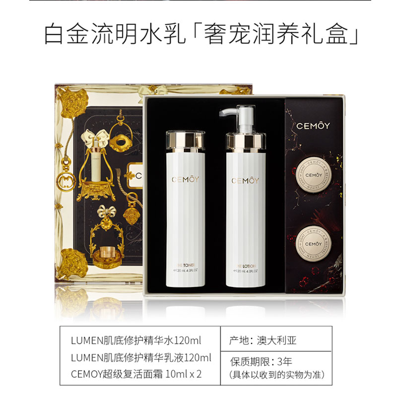CEMOY Platinum Lumen Luxury Pet Gift Box Set CEMOY Platinum Lumen Essence Water CEMOY Platinum Lumen Emulsion CEMOY Platinum Lumen Cleanser CEMOY Platinum Lumen Facial Cleanser