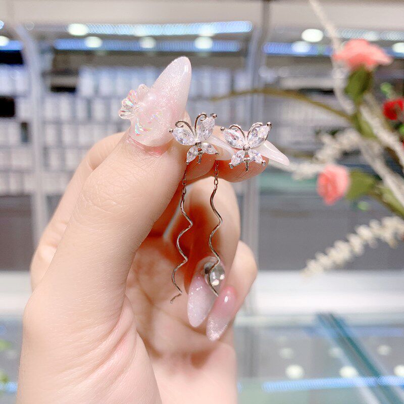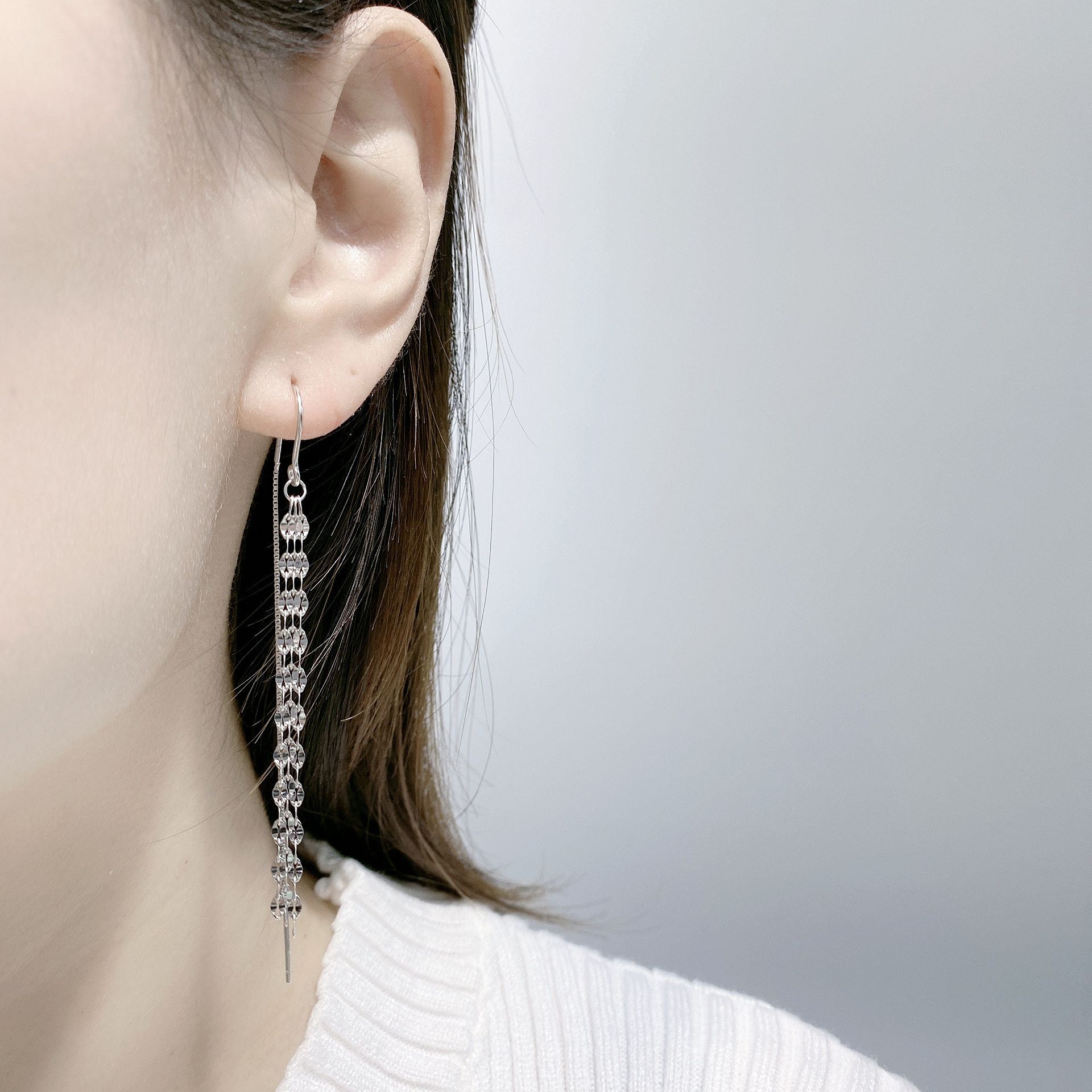 s925 pure silver ear necklace with female long version flow Su lip Earrings Earrings and European and American ethos anti-loss earrings net red with earrings