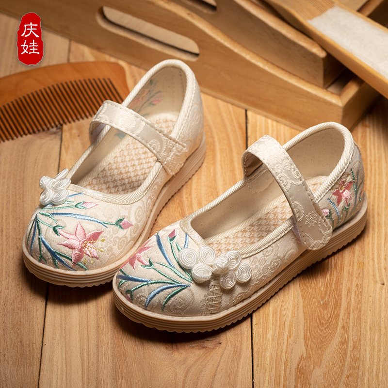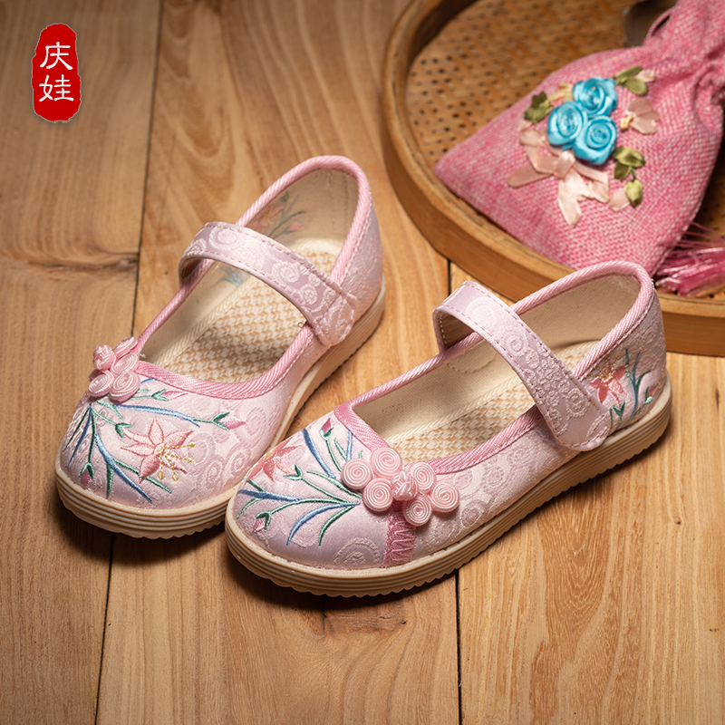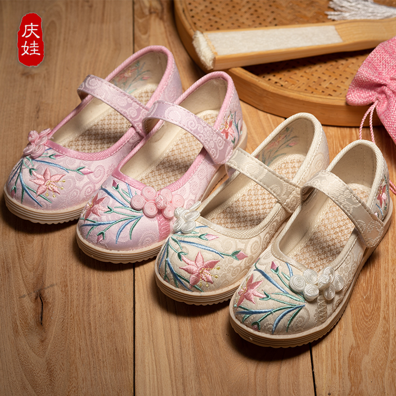 Hanfu boots girls handmade cloth shoes baby new Tang costume ancient costume antique shoes children's embroidered shoes