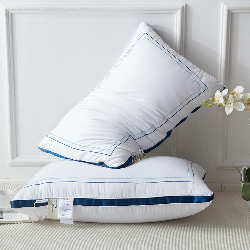 Hotel feather pillow-golden one hotel feather pillow-gray purple one hotel feather pillow-blue one