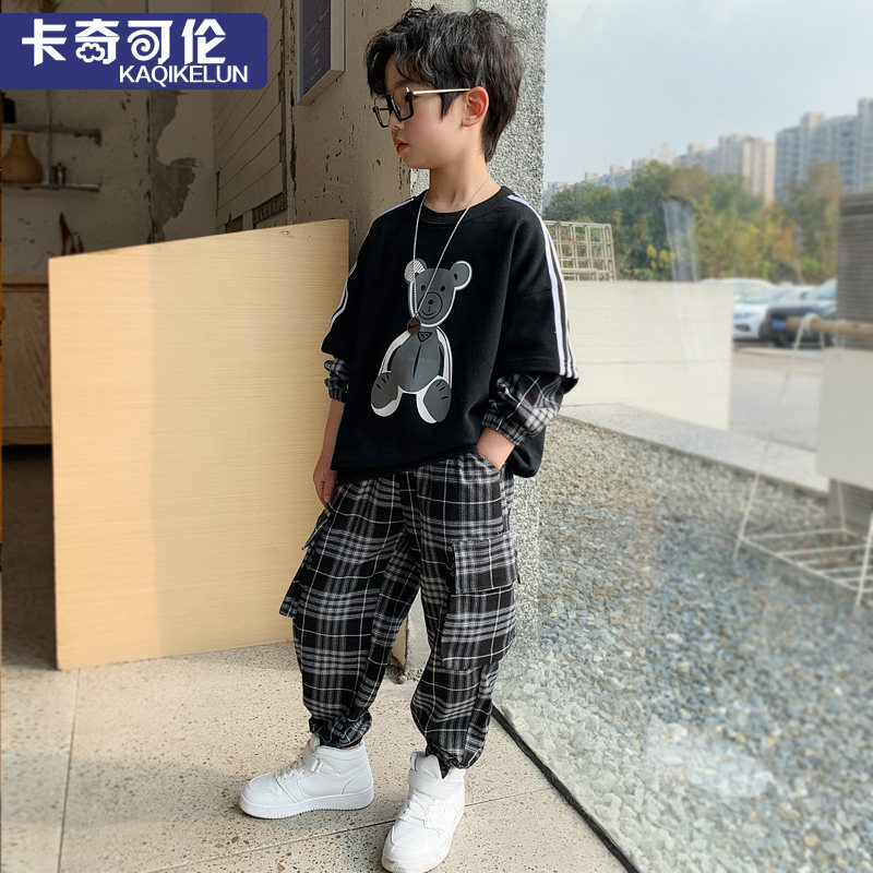 Boy's autumn clothes suit 2022 new tide boy clothing handsome boy sports children clothes boy spring and autumn foreign pie