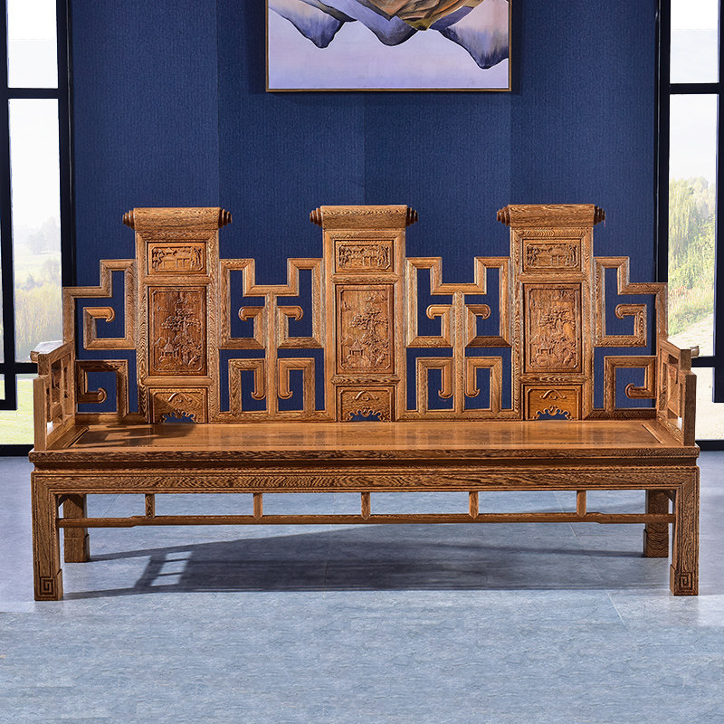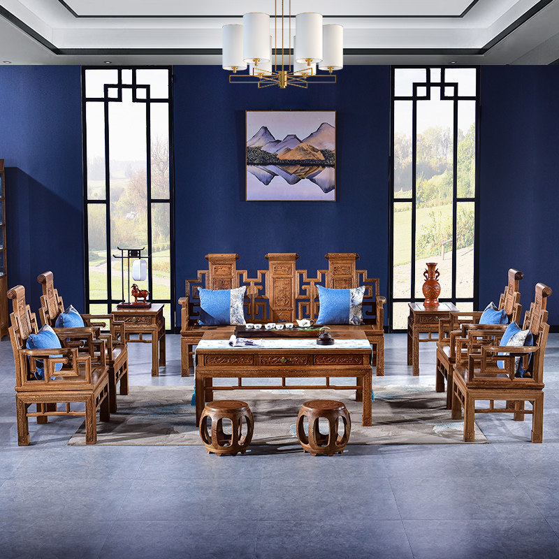 Mahogany furniture chicken wing wood volume book sofa chair combination living room Chinese style solid wood antique sofa complete single three-seater