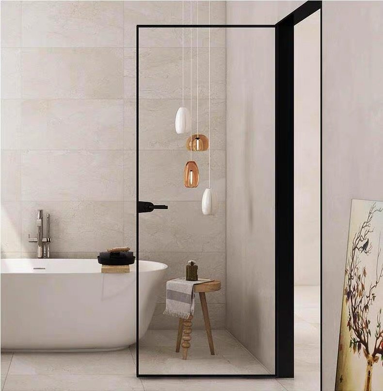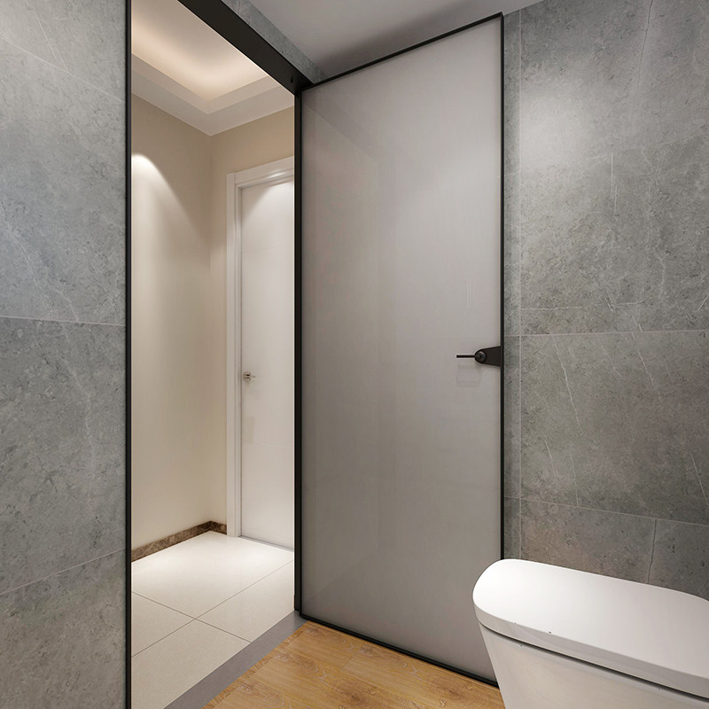 Extremely Narrow Rim Glass Flat Open Door Titanium Magnesium Alloy Door Kitchen Make-up Room Door Light Lavish Narrow Side Glass Aluminum Alloy Door