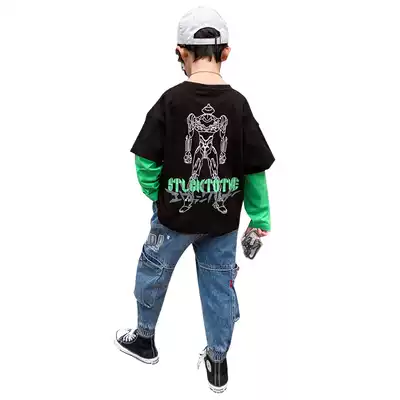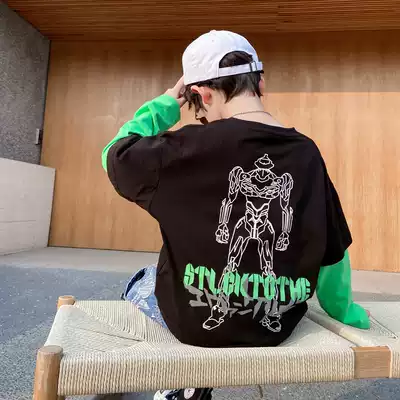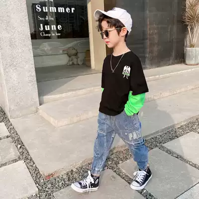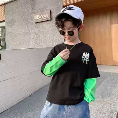 Boys bottoming shirt, children's T-shirt, long-sleeved 2021 new autumn top, spring and autumn, middle and large children, Korean version of the western style stitching