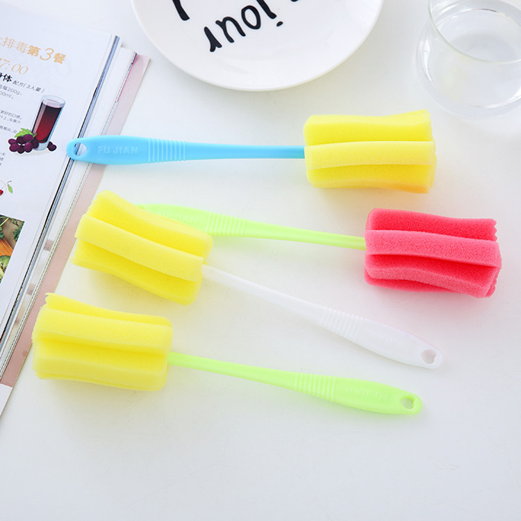 Home Kitchen Sponge Brushed Glass Cup Cleaning Brush Long Handle Brushed Long Bottle Tea Cup Brush Wash Cup Brush Rotary Milk Bottle Brush