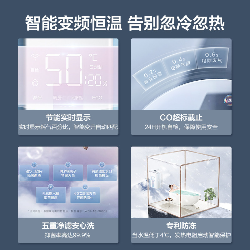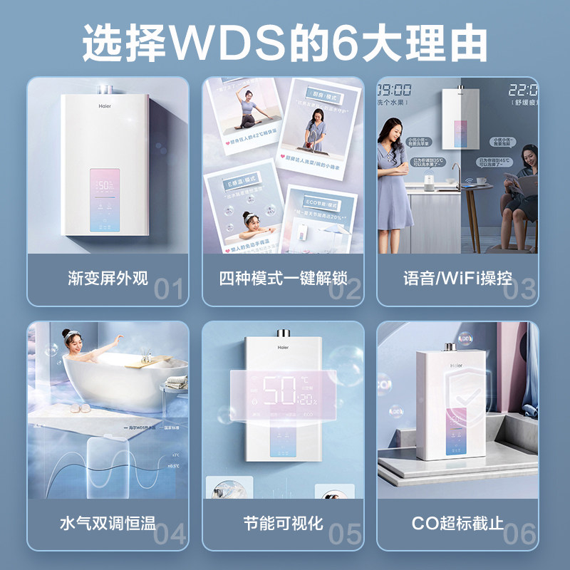 Haier gas water heater natural gas electricity household dazzling screen intelligent constant temperature instantaneous heat strong exhaust type 13L16 literS WDS