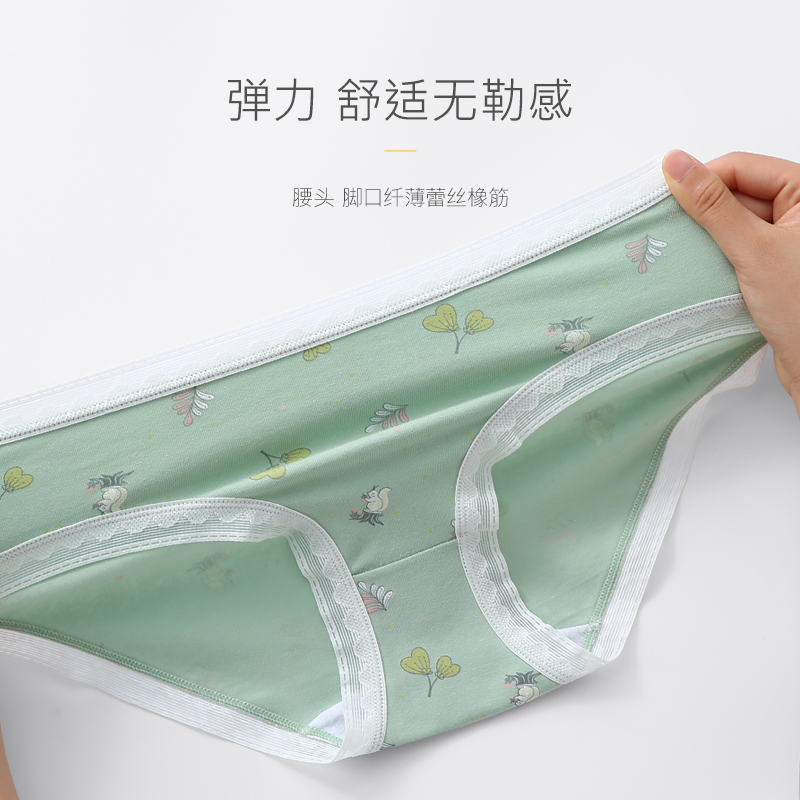 Catman Underpants Women's Pure Cotton Girls Antibacterial Breathable Mid Waist Lace Girls Japanese Sexy Women's Triangle Shorts Head