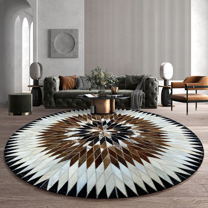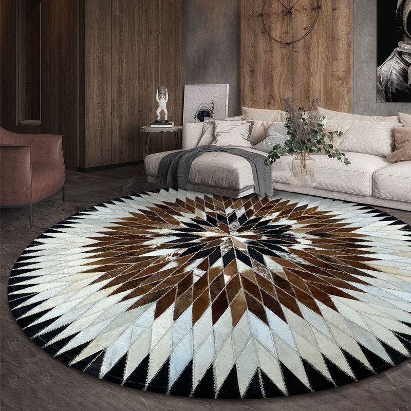 Modern Light Luxury Round Carpet Small Stitching Cowhide Retro Homestay Style Living Room Coffee Table Cloakroom Bedroom Bedside Blanket