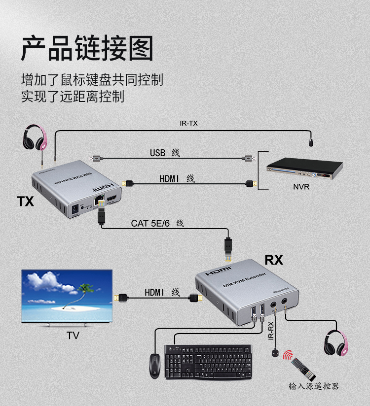 Saiwen hdmi KVM extender 60 meters to rj45 with USB mouse keyboard Network cable transmitter Audio and video signal synchronous transmission Monitoring video recorder Projector extender