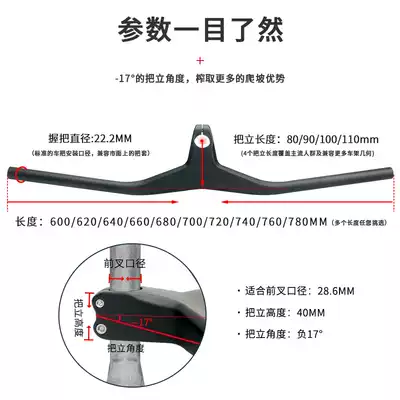 The new second-generation upgraded carbon fiber handlebar mountain bike one-piece straight handle horizontal broken wind one-word handle 17 degree bicycle accessories