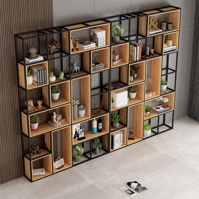 American Shelf Office Partitions Iron Art Industrial Wind Show Shelf Floor Multilayer Bookshelves Living-room Solid Wood Screens