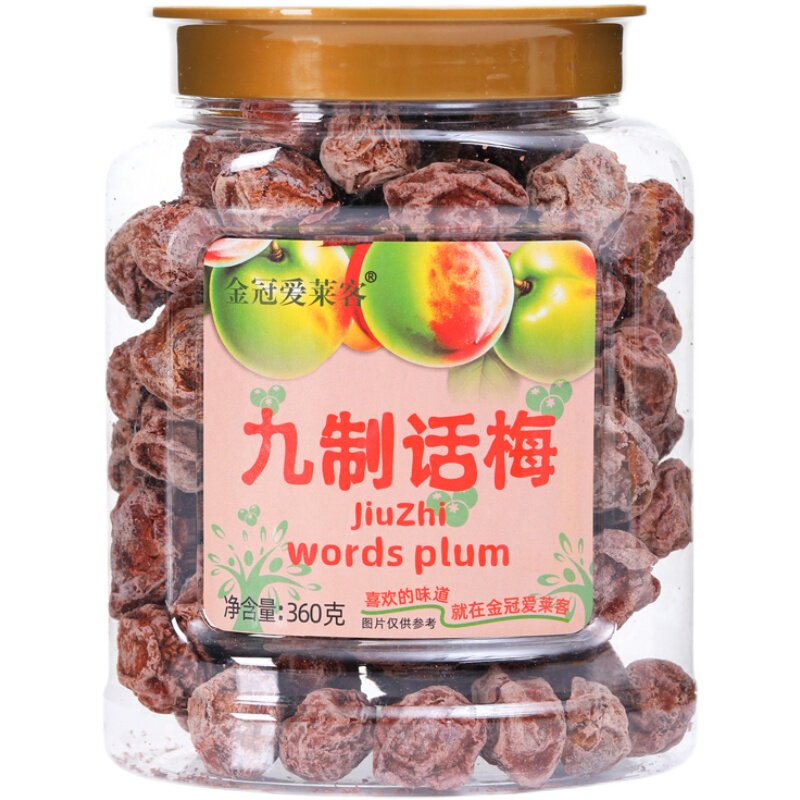 Dried plums, golden crown, love, nine-system plums, 360g licorice, sweet and sour plum, candied fruit, dried fruit, canned snacks