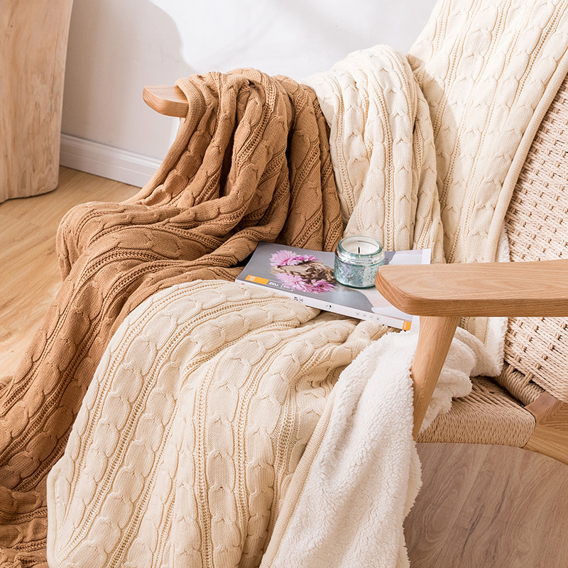 Winter plus velvet thickened blankets Quilts Cashmere Composite Blanket Nordic Full Cotton Knit Blankets Afternoon Nap Sofa Cover Blanket