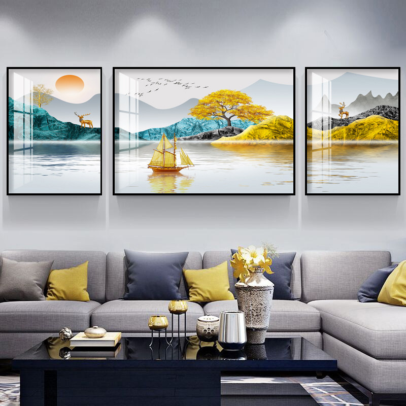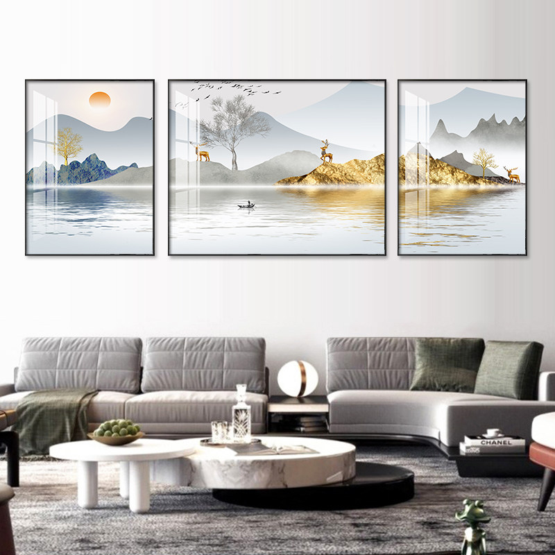Backed by a mountain living room decoration painting landscape landscape crystal porcelain inlaid with diamonds new Chinese wall modern simple bedroom mural