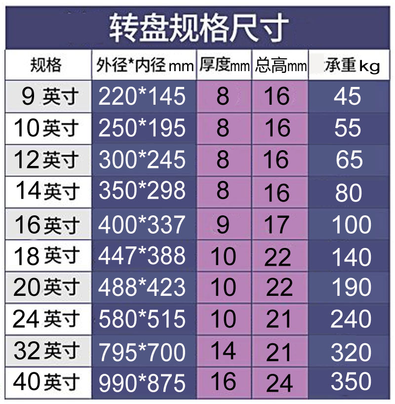 Round table turntable base swivel center metal aluminum alloy rotating shaft bearing wood marble glass track turntable