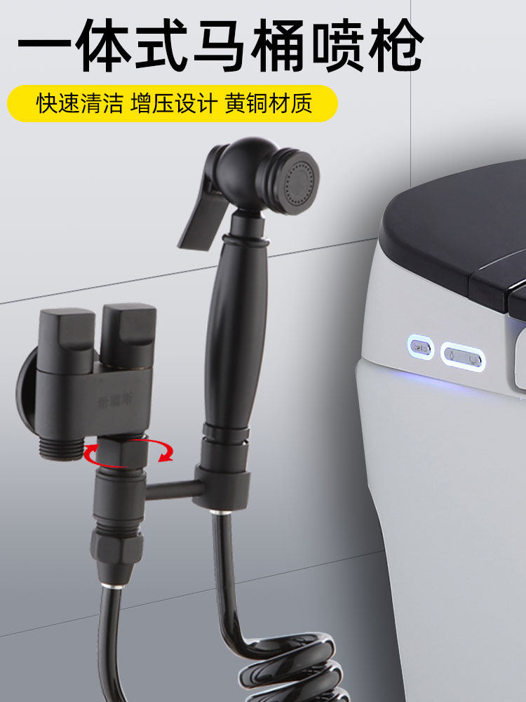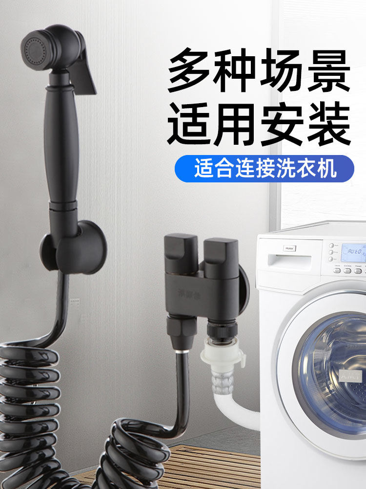 Adapted to Jiumu Wrigley Kohler Sirius black one-in-two-out double-control angle valve double-switch all-copper dual-use spray gun