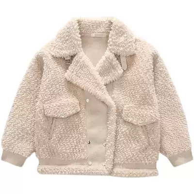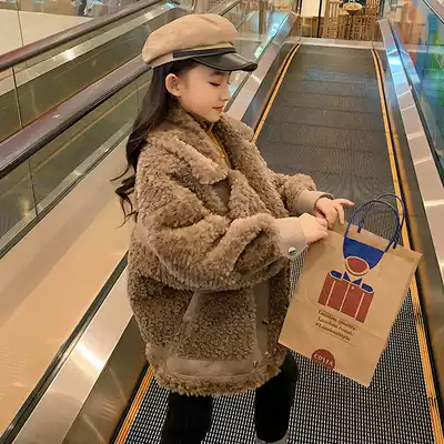 Hong Kong 2021 New lamb coat girl plus velvet foreign fashion big child fur one thick winter dress