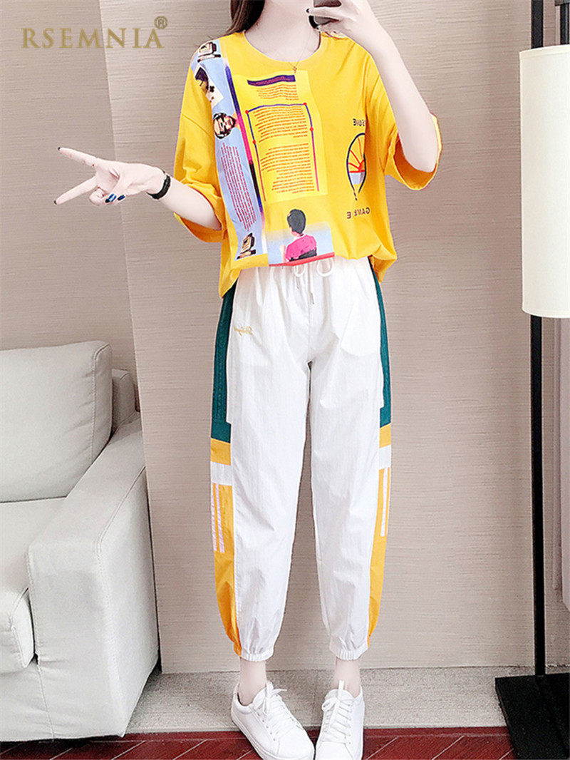 Rsemnia Korean Version New Sports Suit Women Loose Blouse Foreign Pie Hip Hop Pants Fashion Casual Two-piece Style