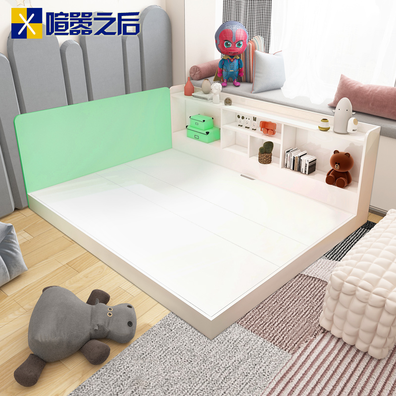 Simple modern bedroom children's bed Boy tatami bed cabinet combination set Children's bed with bookshelf storage cabinet