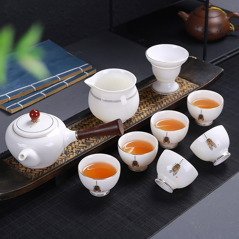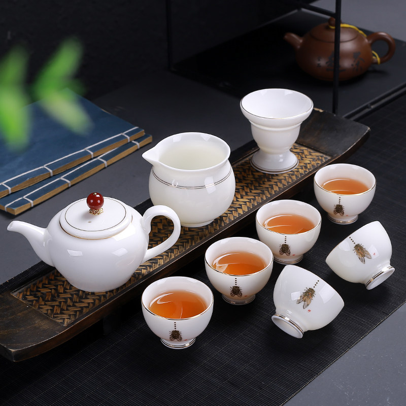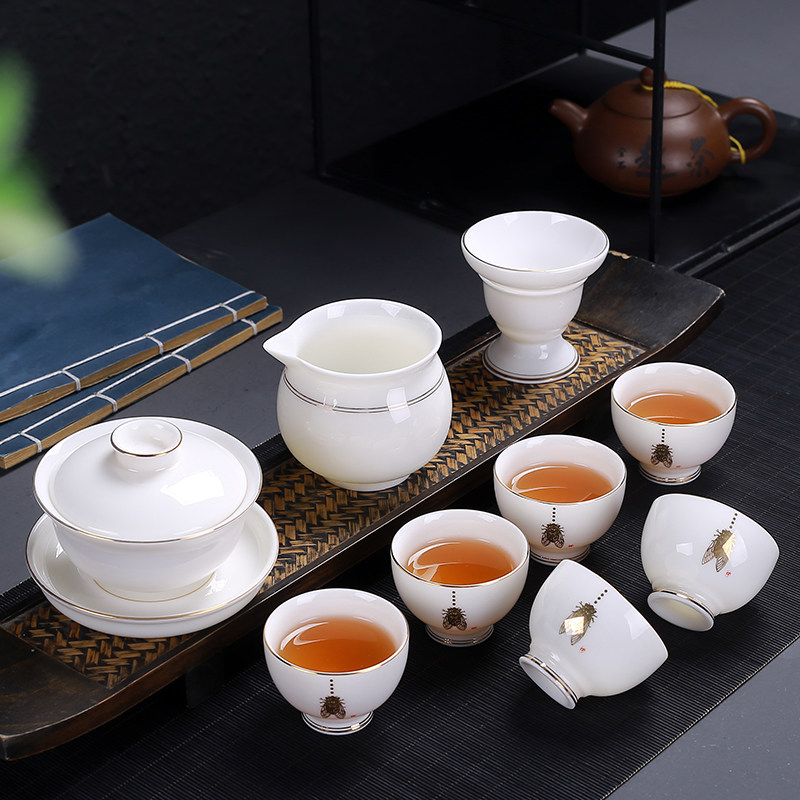 11 pieces of trekking (gift box dress) 10 pieces of teapot gold cicadas (gift box fit) 10 pieces of cover side to make pot gold cicadas (gift box clothing) 10 pieces of cover bowl gold cicadas (gift box dress) 11 pieces of sketches