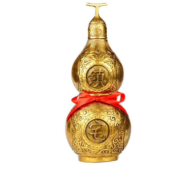 Gossip pure copper open cover open hollow gourd Feng Shui decoration home living room desktop decoration large, medium and small