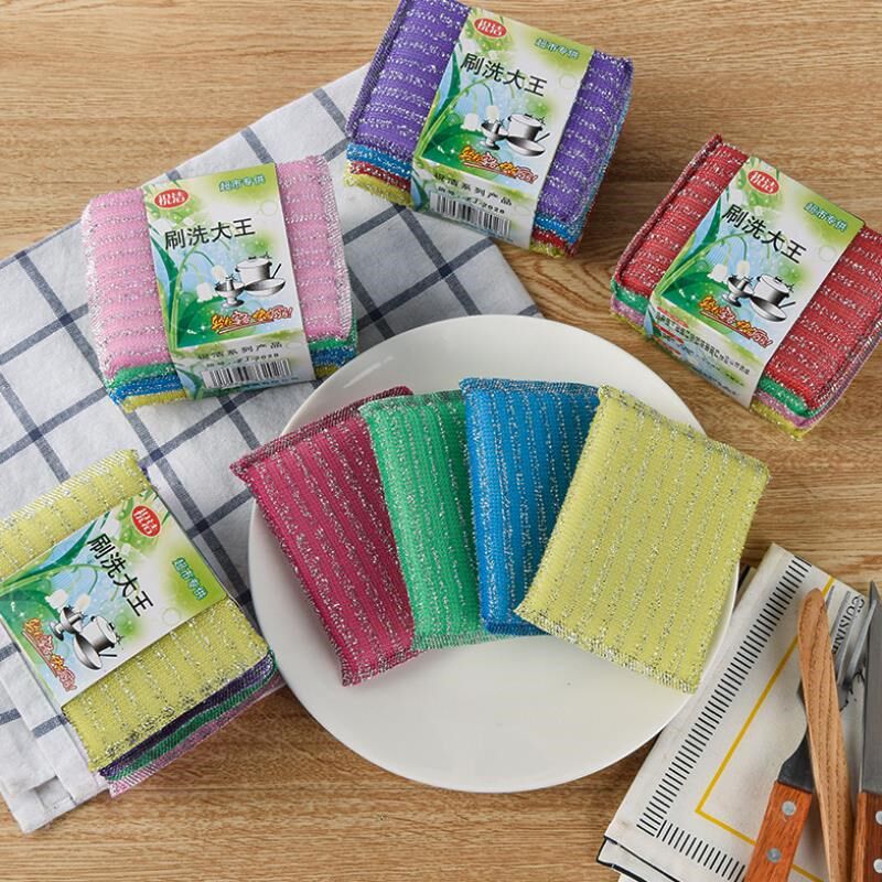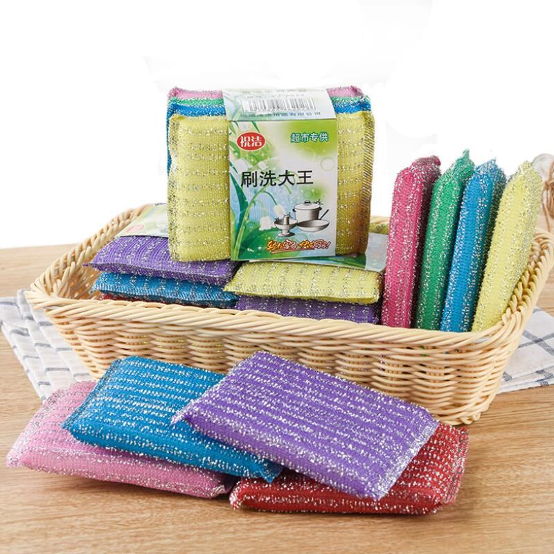 Dishwashing Sponge Brush Bowl with Steel Wire Cotton Brush Ball Double-sided Household Kitchen Supplies Clean Hotel