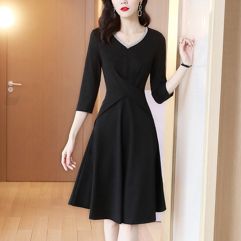 2021 new dress spring and summer black temperament high-end foreign school thin socialite Hepburn small black dress dress