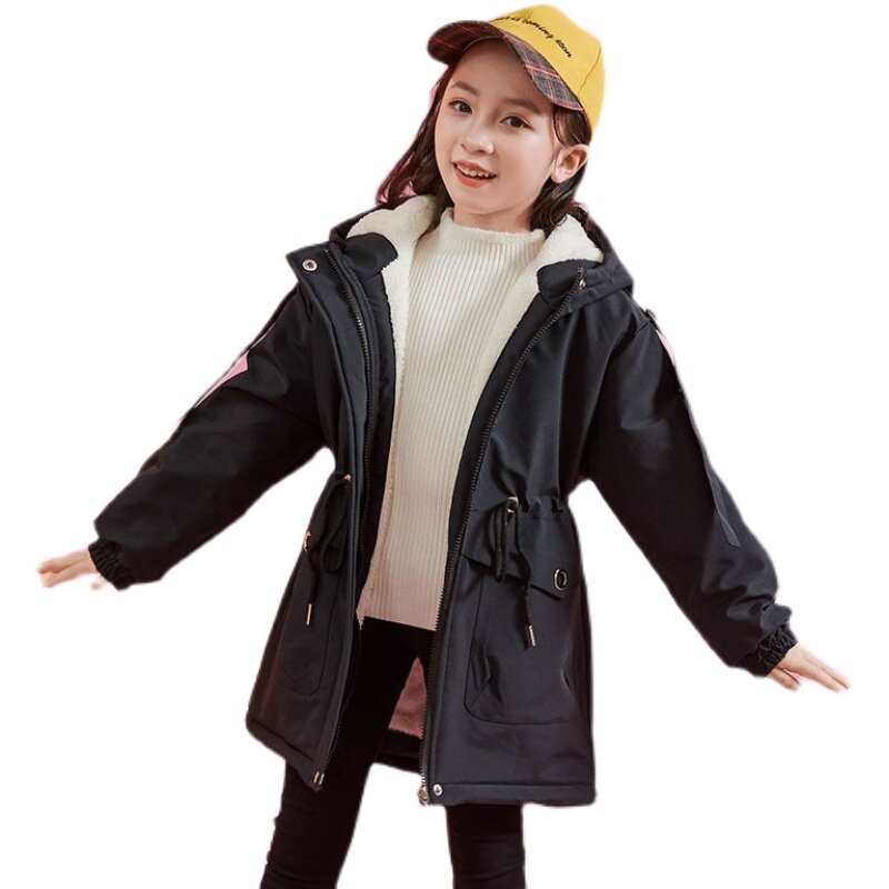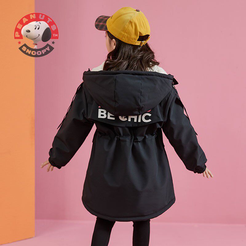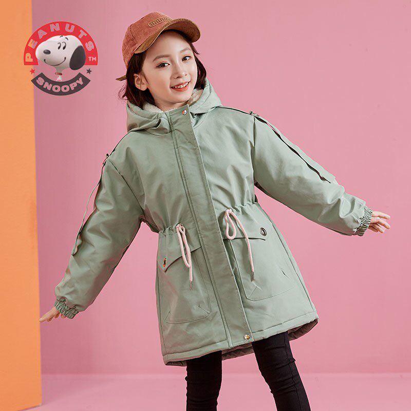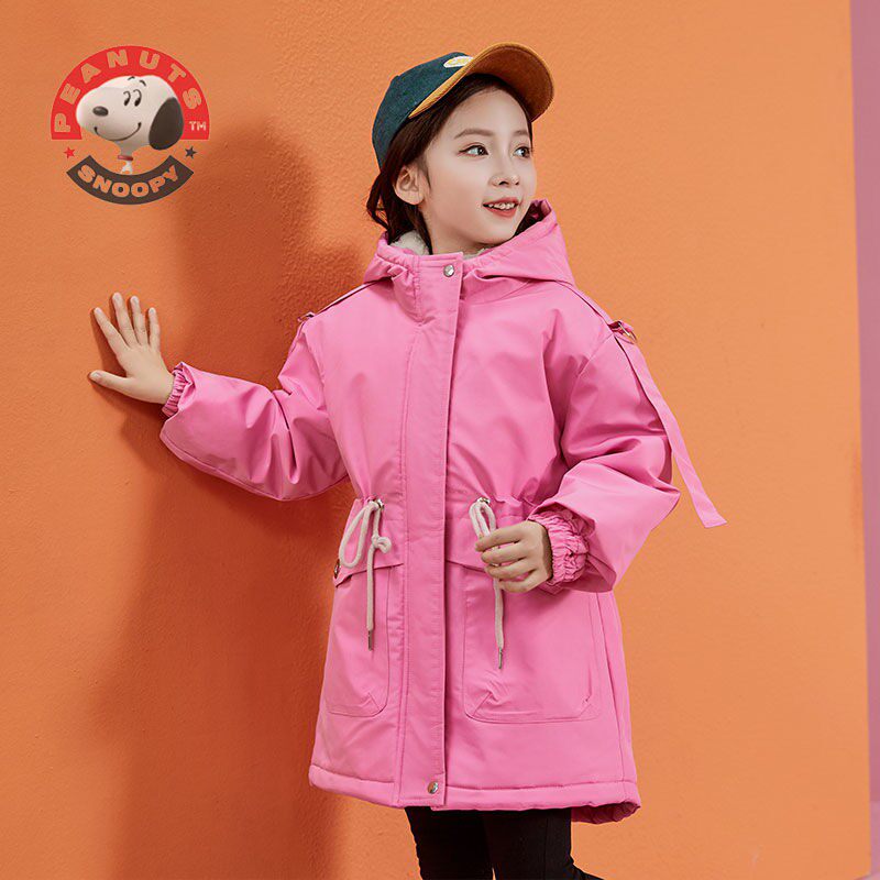 Snoopy girl's new style plus velvet thick cotton clothes middle-aged children's foreign style children's waist-length version lamb velvet cotton clothes