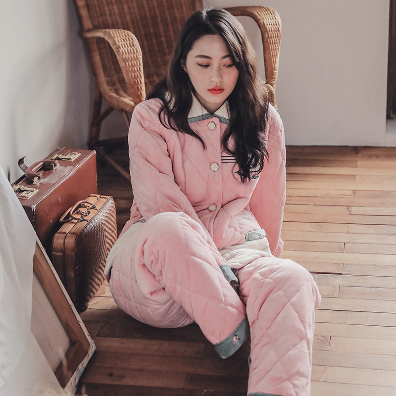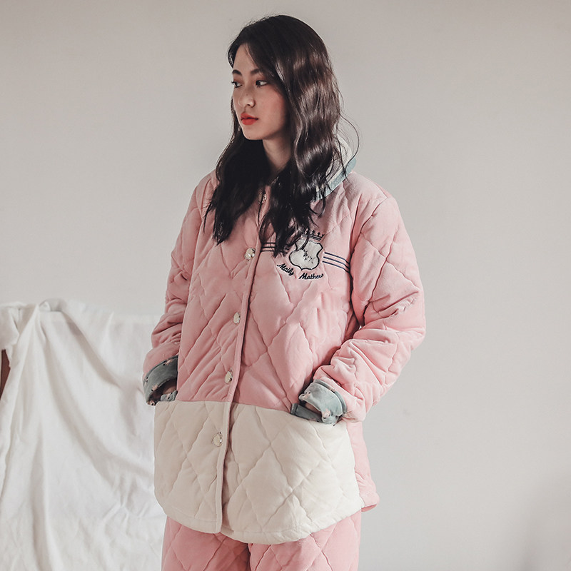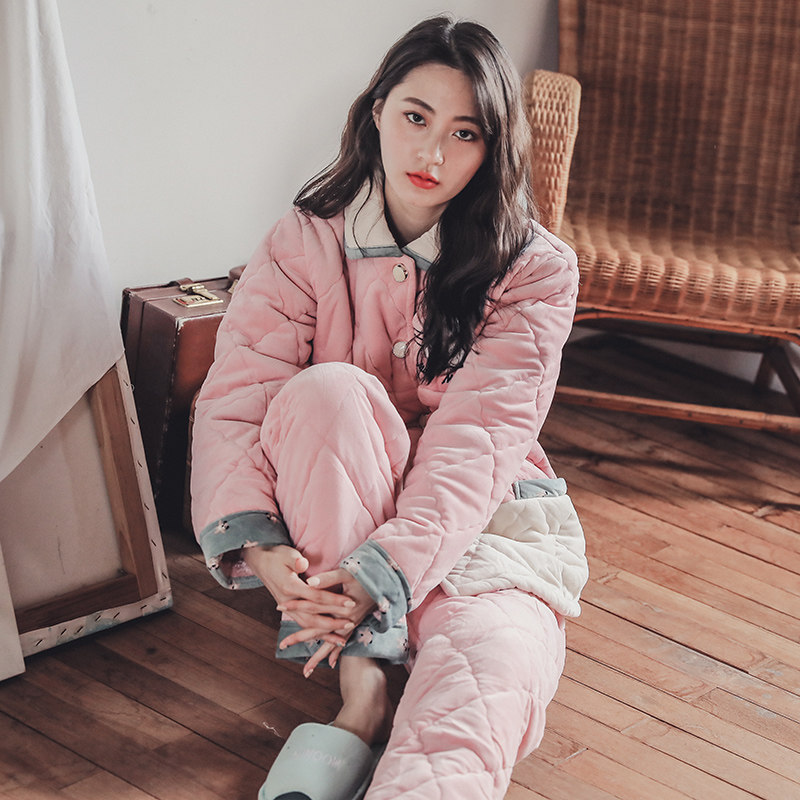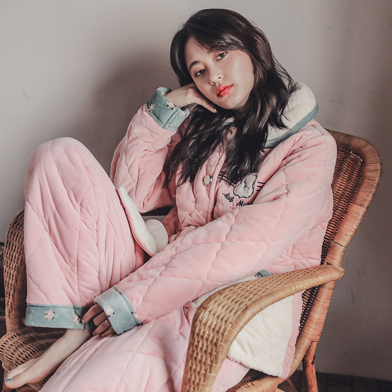 Pyjamas Winter Thickened Triple Clip Cotton Plus Suede Coral Suede Casual Lovely Outwear Home Clothing Can Go Out Autumn Winter-Taobao