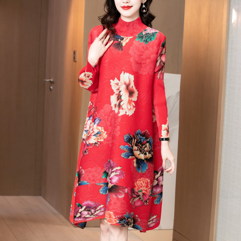 The New Year's Eve red fashion woman dress New Year's Mother's dress 2021 Three mansions Folds Foreign Mount Spring High-end Large Size