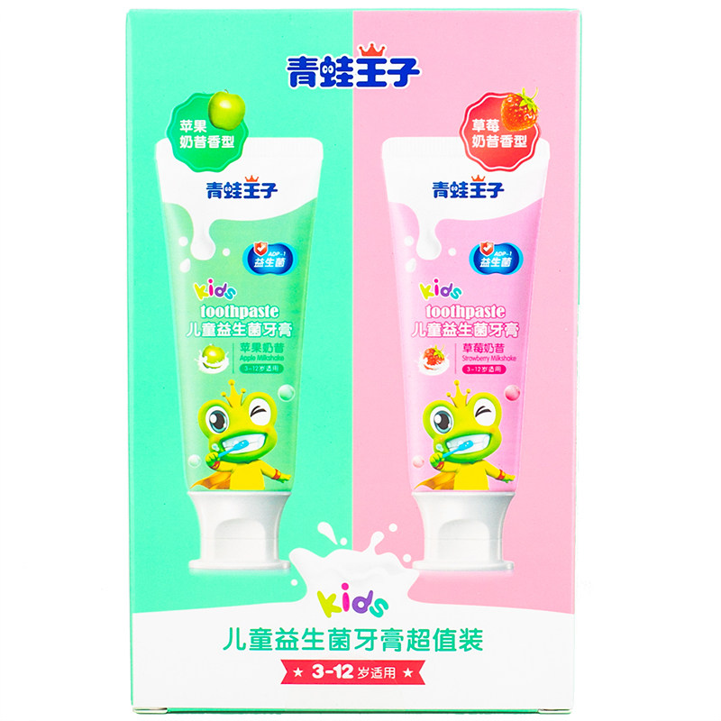 Frog Prince Children's Probiotic Toothpaste 2 Super Value Pack Apple Milkshake Teeth Strawberry Flavor 3-12 Years Old For Brushing Teeth