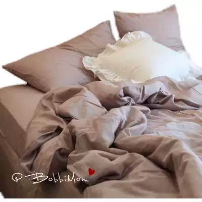 Bobby home custom double-layer gauze four-piece set A cotton yarn custom quilt cover bed sheet bed hats pillowcase ~ plain light love