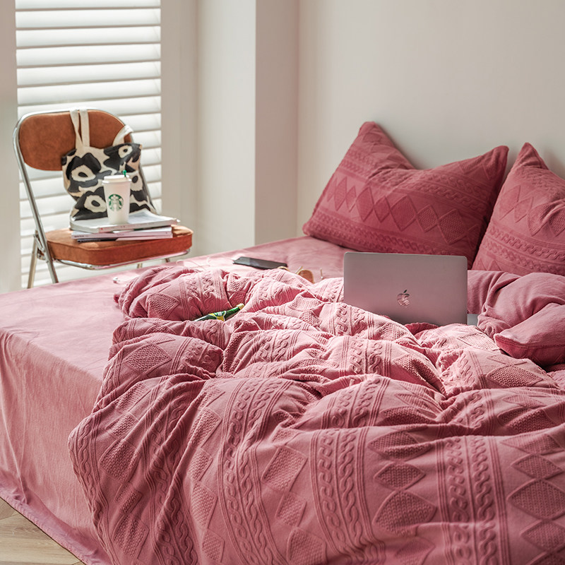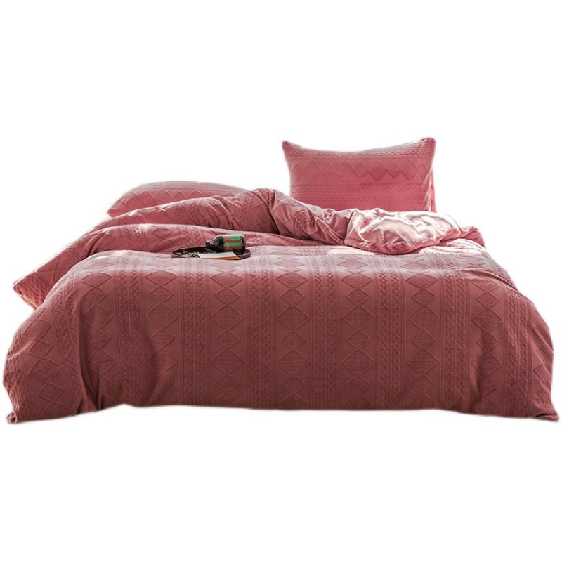 High Gram Heavy Milk Suede Baby Suede Solid Gallows Laziness Pure Color Warm Four Sets Bed Linen Bed Hood Flannel