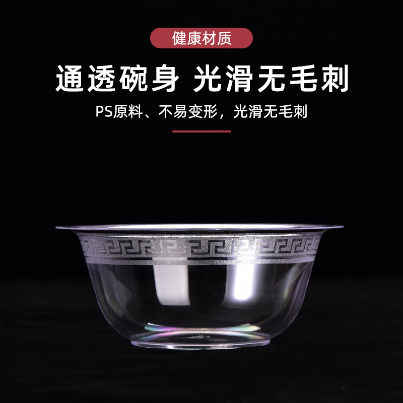 Disposable bowl thickened aviation crystal bowl Household food grade plastic bowl Hard material soup bowl Environmental protection outdoor barbecue