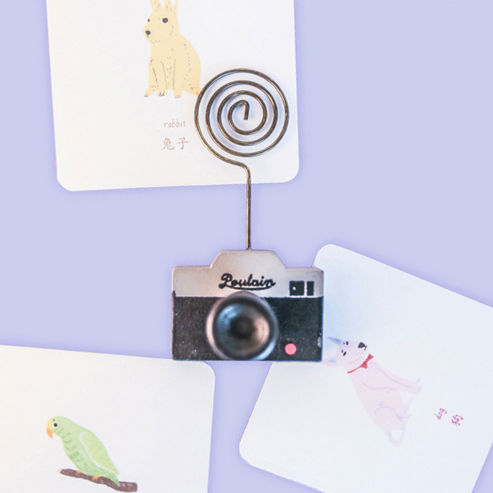 Creative wooden retro clock camera sticky note card business card holder desktop photo message sticky note clip decorative ornaments